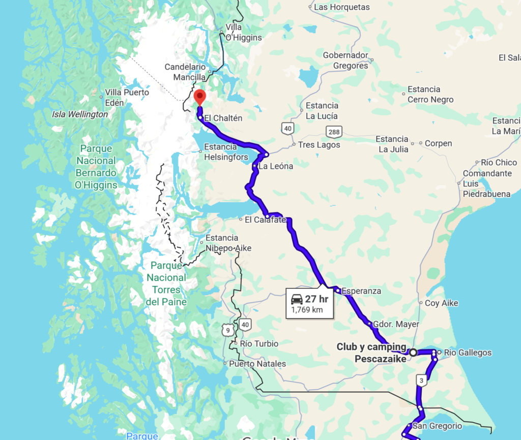We left our campsite near the Penguin colony on the Strait of Magellan and headed northwest to Glaciers National Park and our campsite outside of the mountain adventure town of El Chalten, Argentina.
