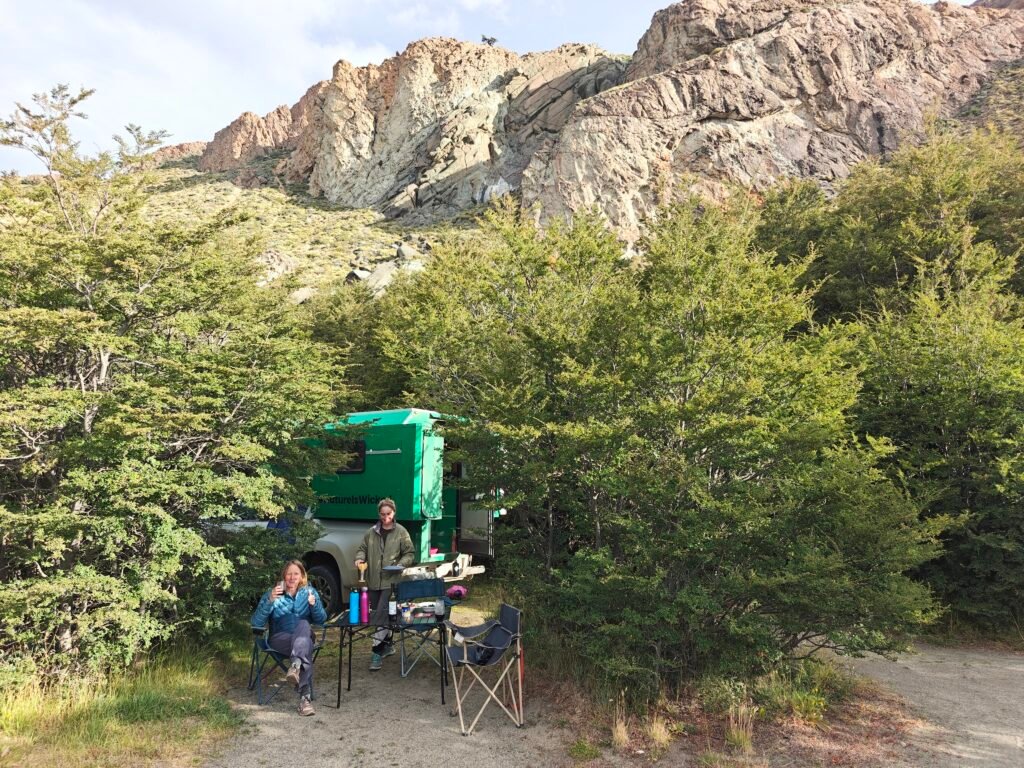 We stayed in a campsite about 10 km north of El Chalten, right on the river. It was a somewhat quirky campground, but it had working toilets and hot showers, and a place to park our camper riverside, so our needs were met. Here’s a couple of pics: